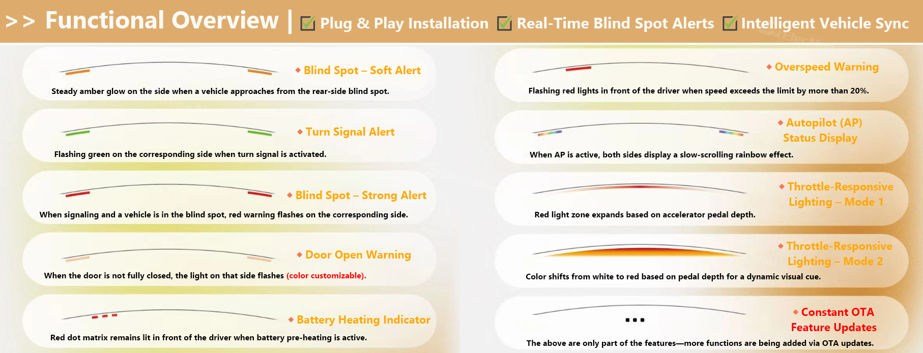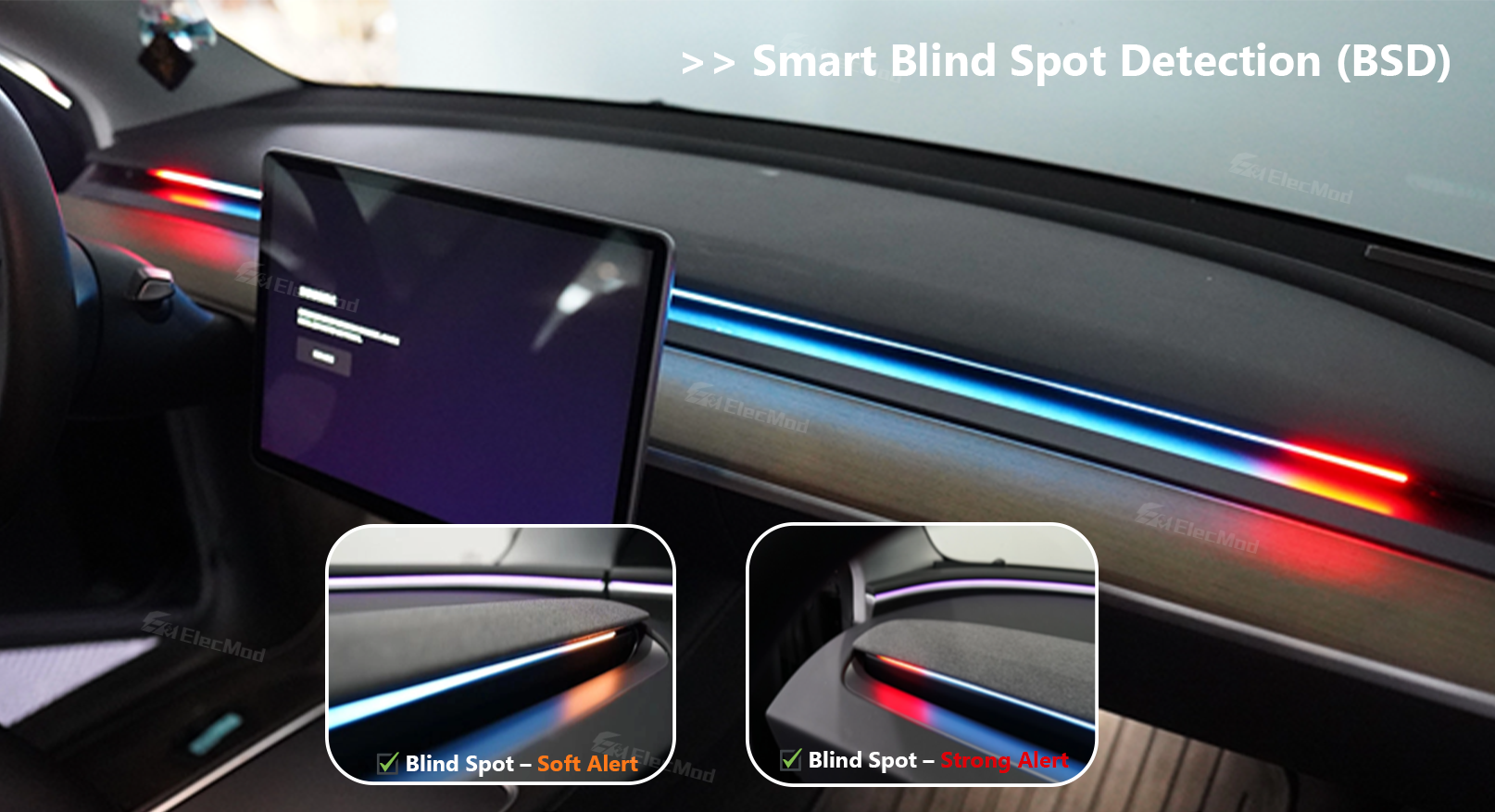 ElecMod BSD Blind Spot Detection Smart Ambient Lighting System For Model 3/Y/3 Highland/ Y Juniper