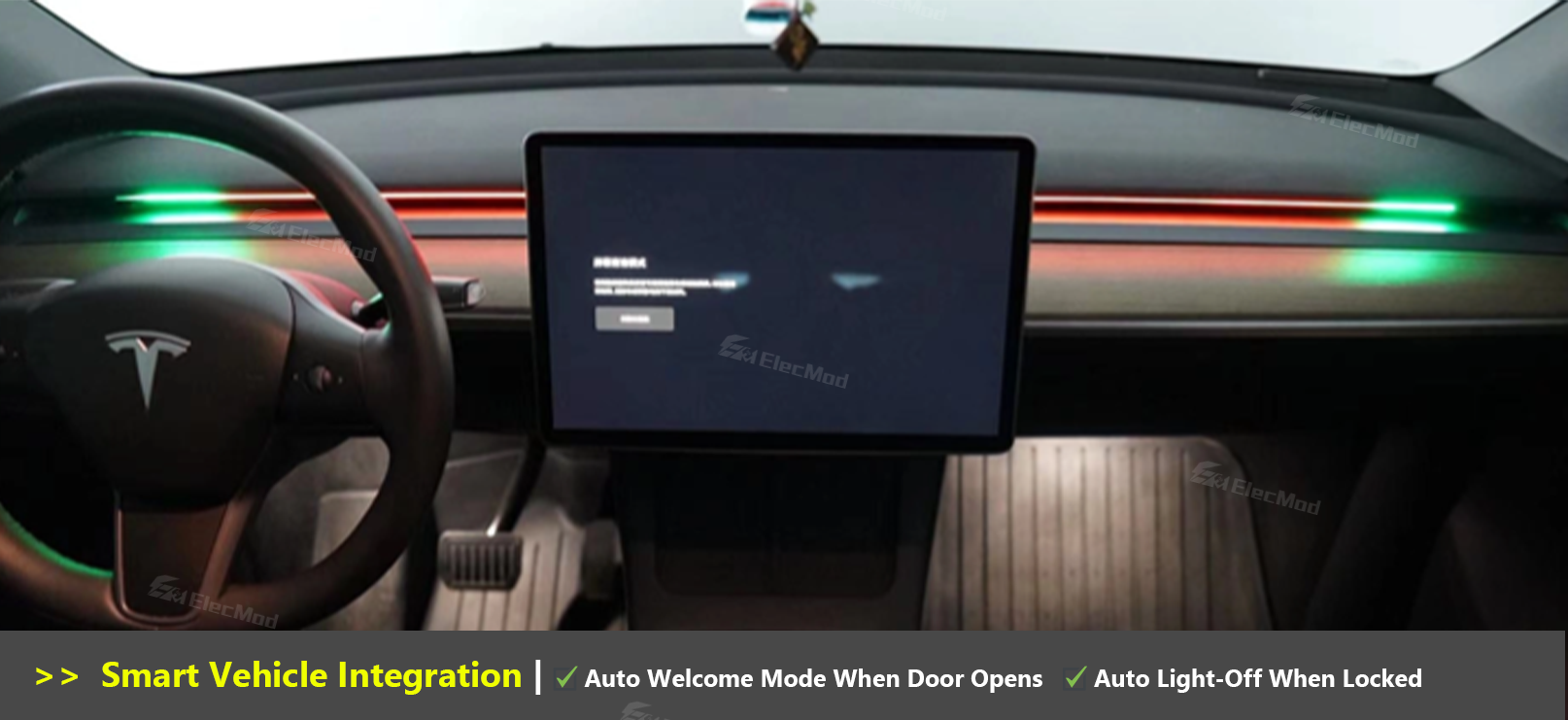 Upgrade your Tesla Model 3 or Y with ElecMod Smart BSD Ambient Lighting System — an advanced solution that fuses safety with immersive style.