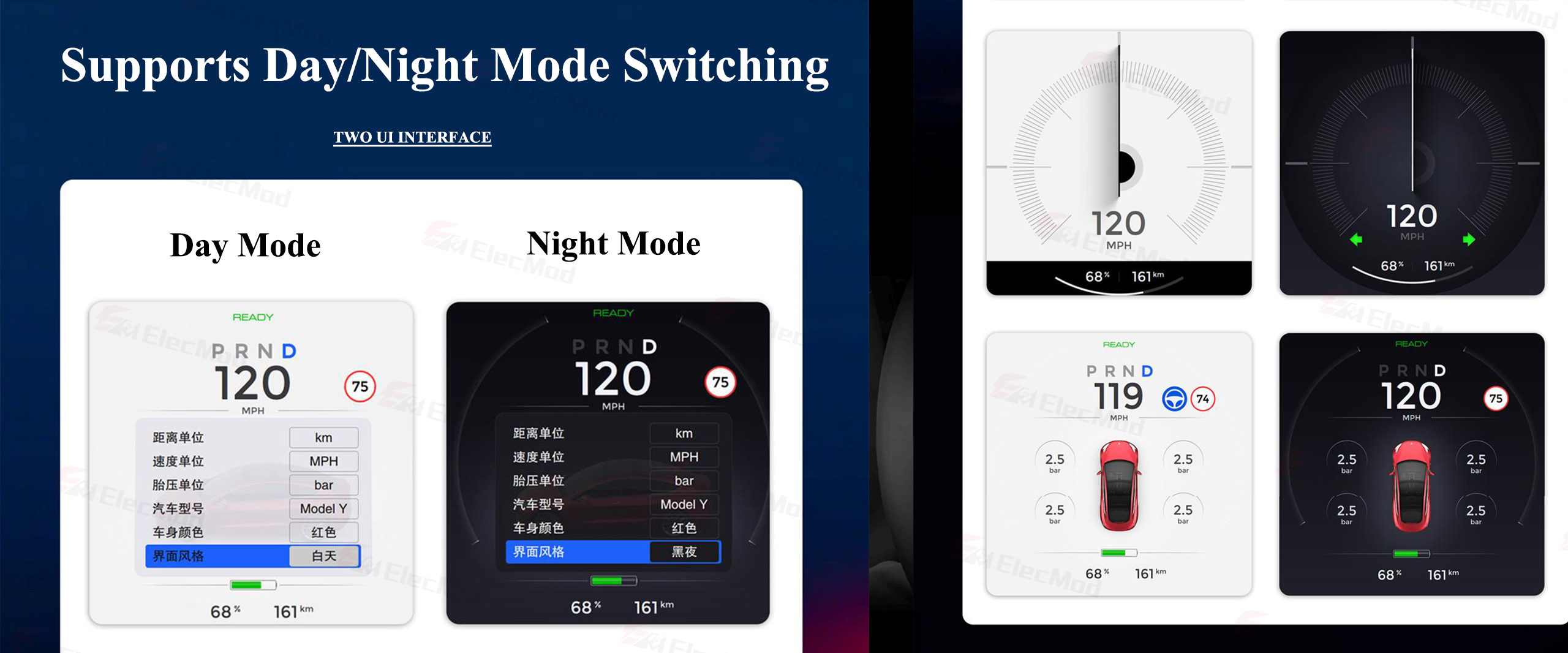 - Day & Night Mode: The day/night mode is customized to automatically follow the original car. Switch between day and night mode for optimized visibility, ensuring clear and readable information at all times.